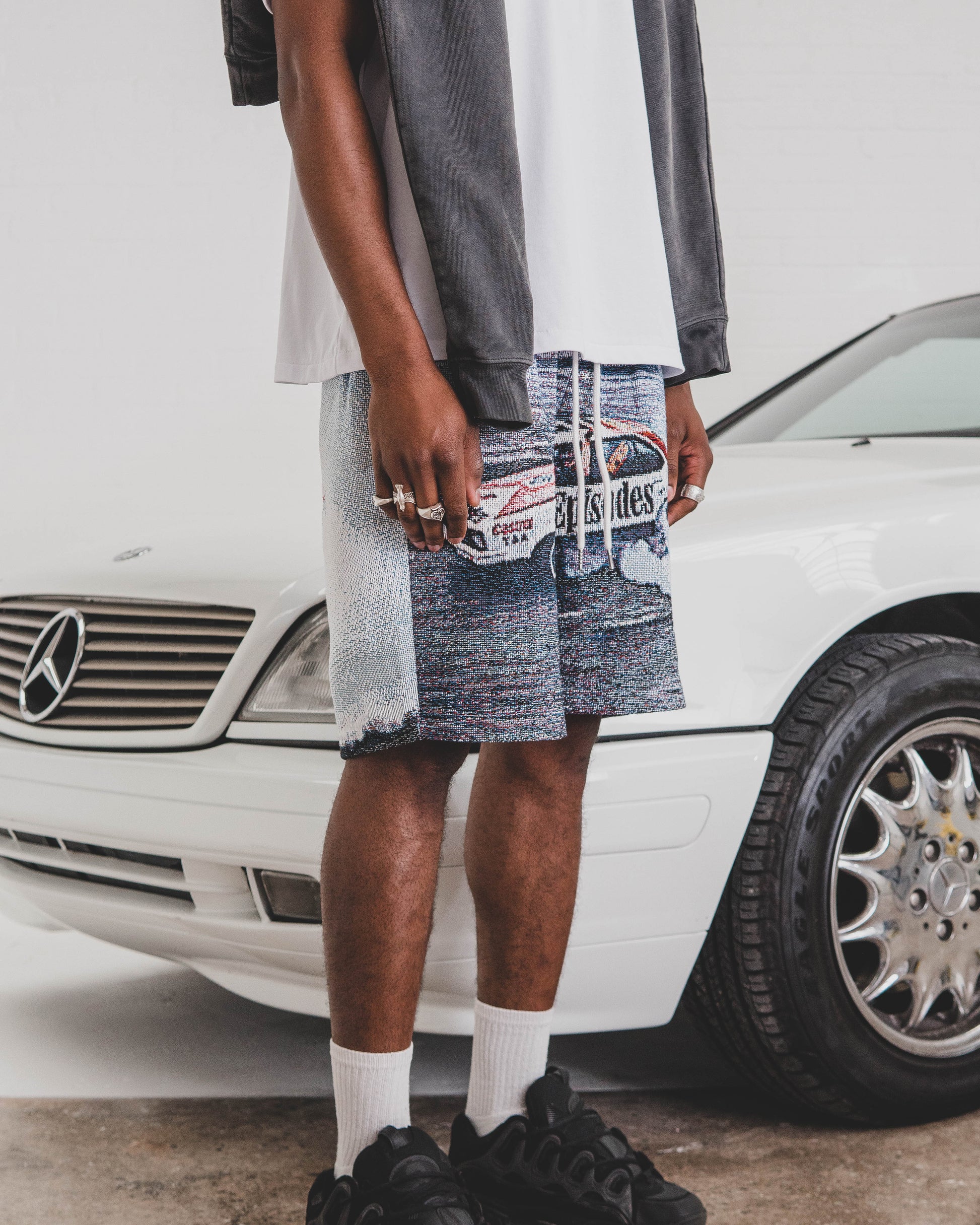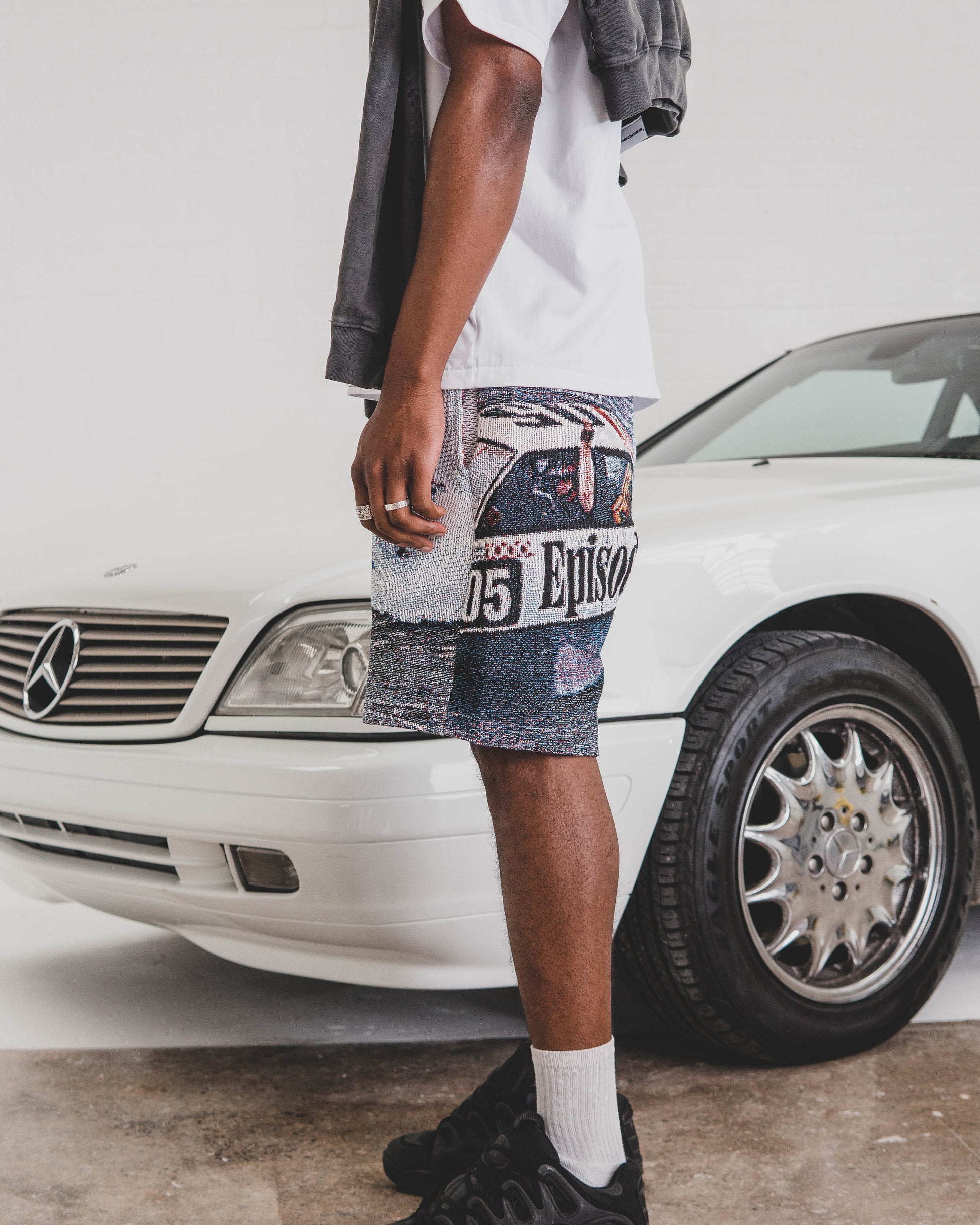 'DRIFT' Tapestry Shorts. Each piece is custom cut & sewn to produce a unique look. Designed in house.