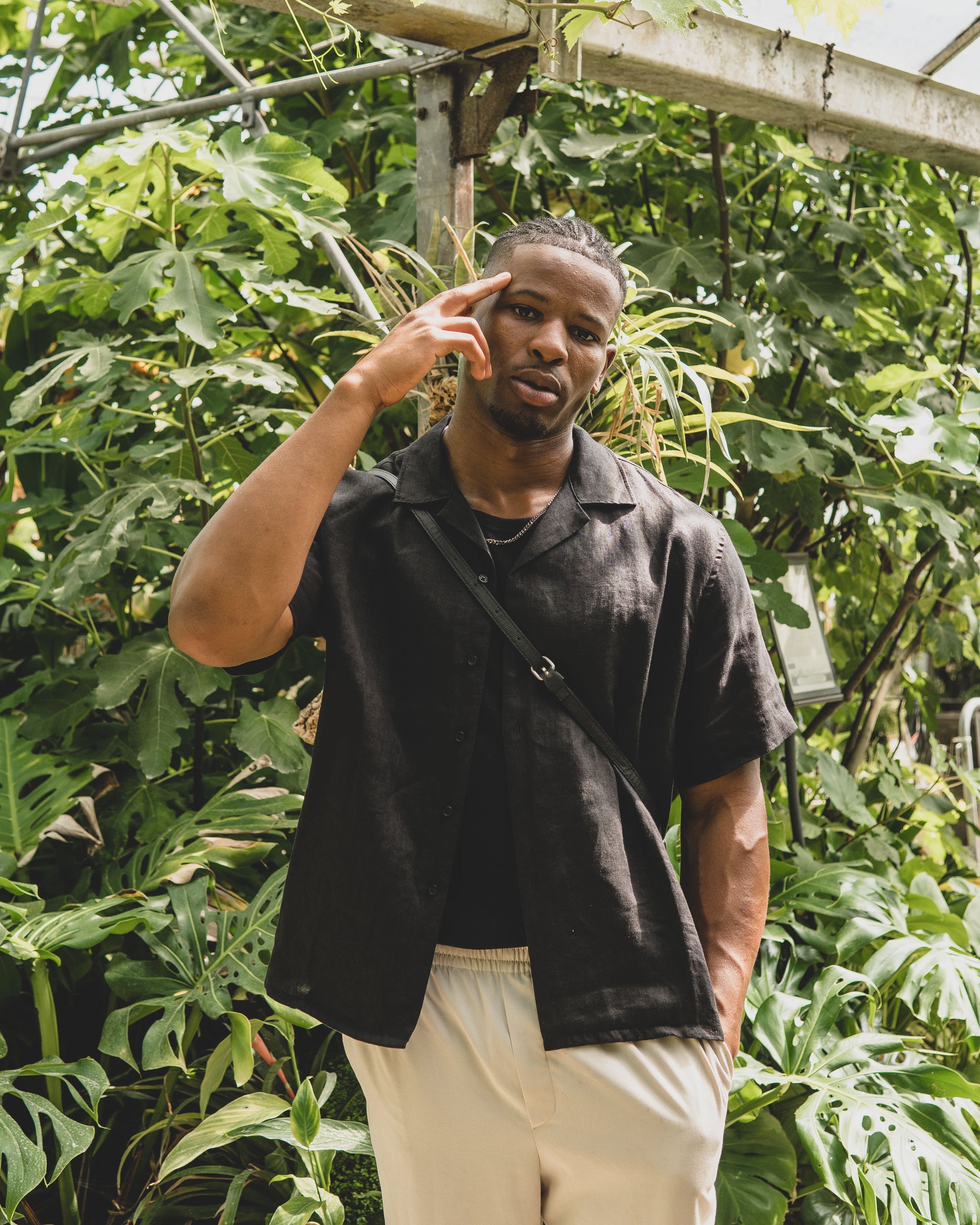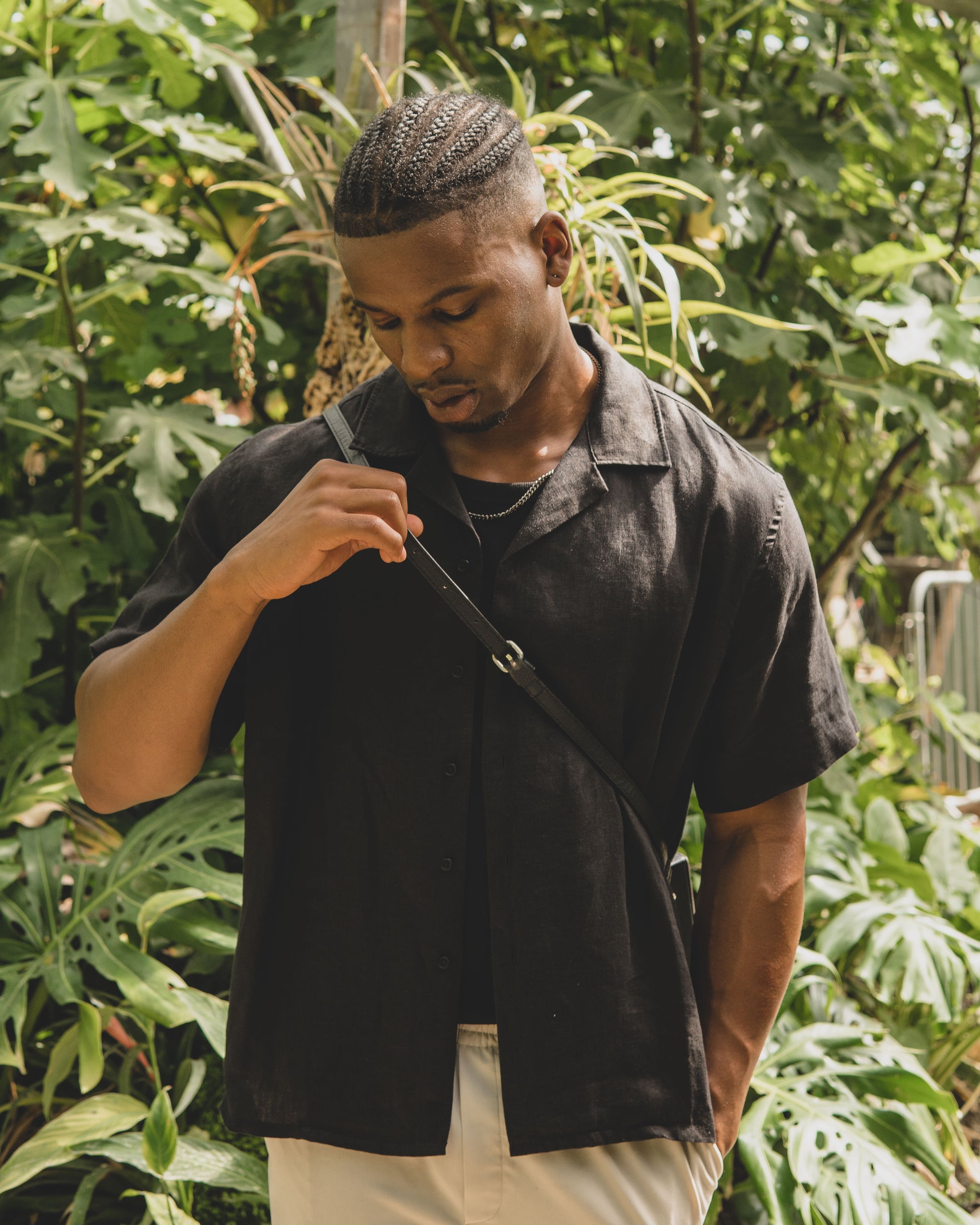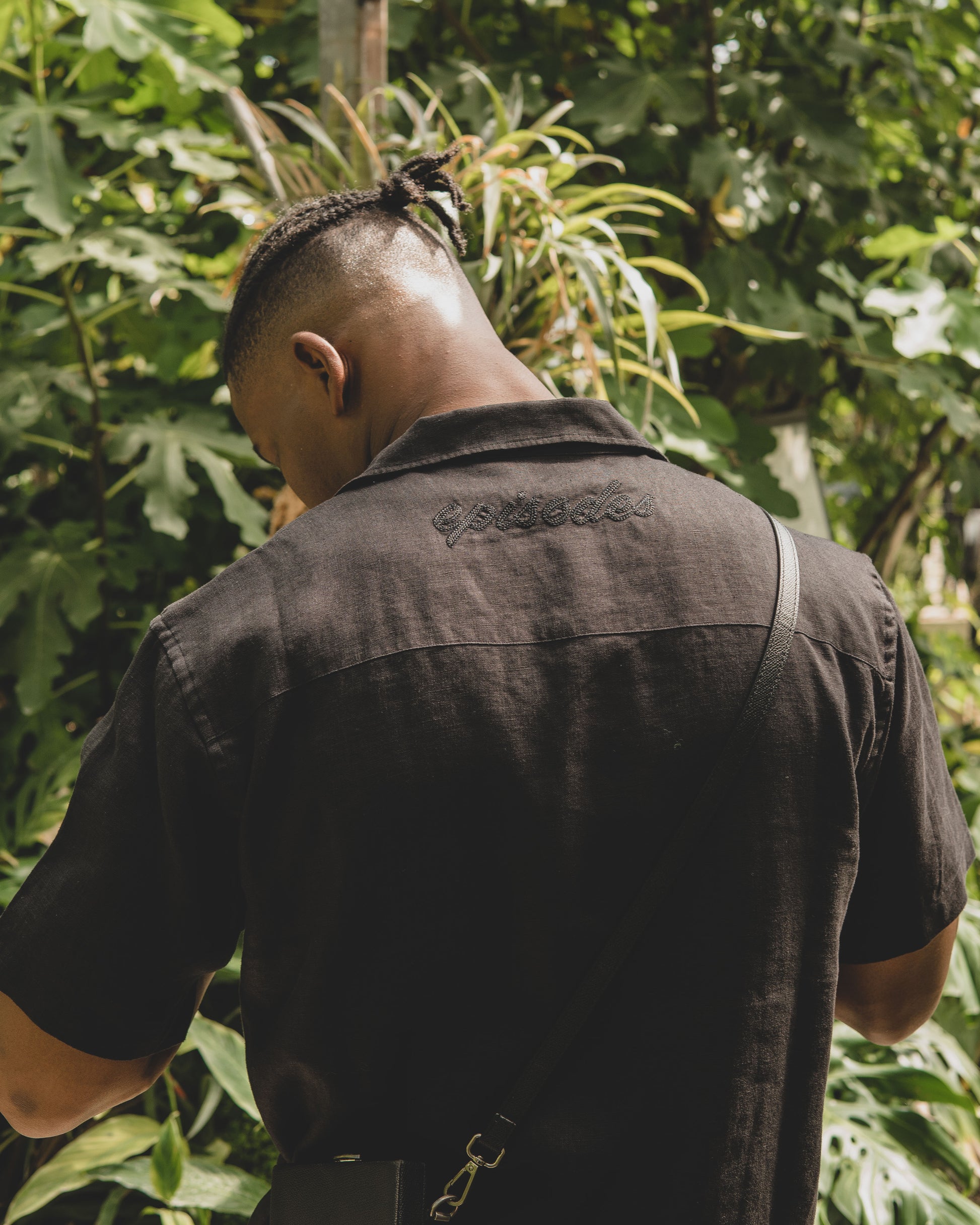 100% Thick Linen Cotton 200GSM - Boxy Fit - Camp Collar - Chain Stitch Embroidery - Discrete Branding.