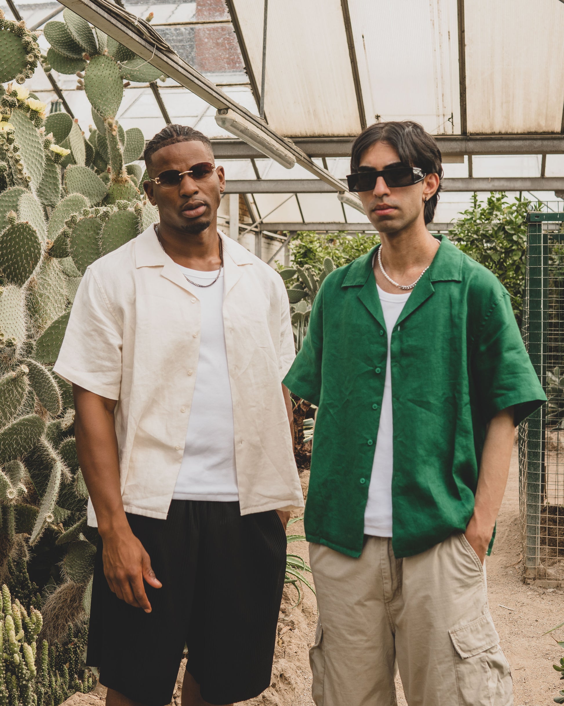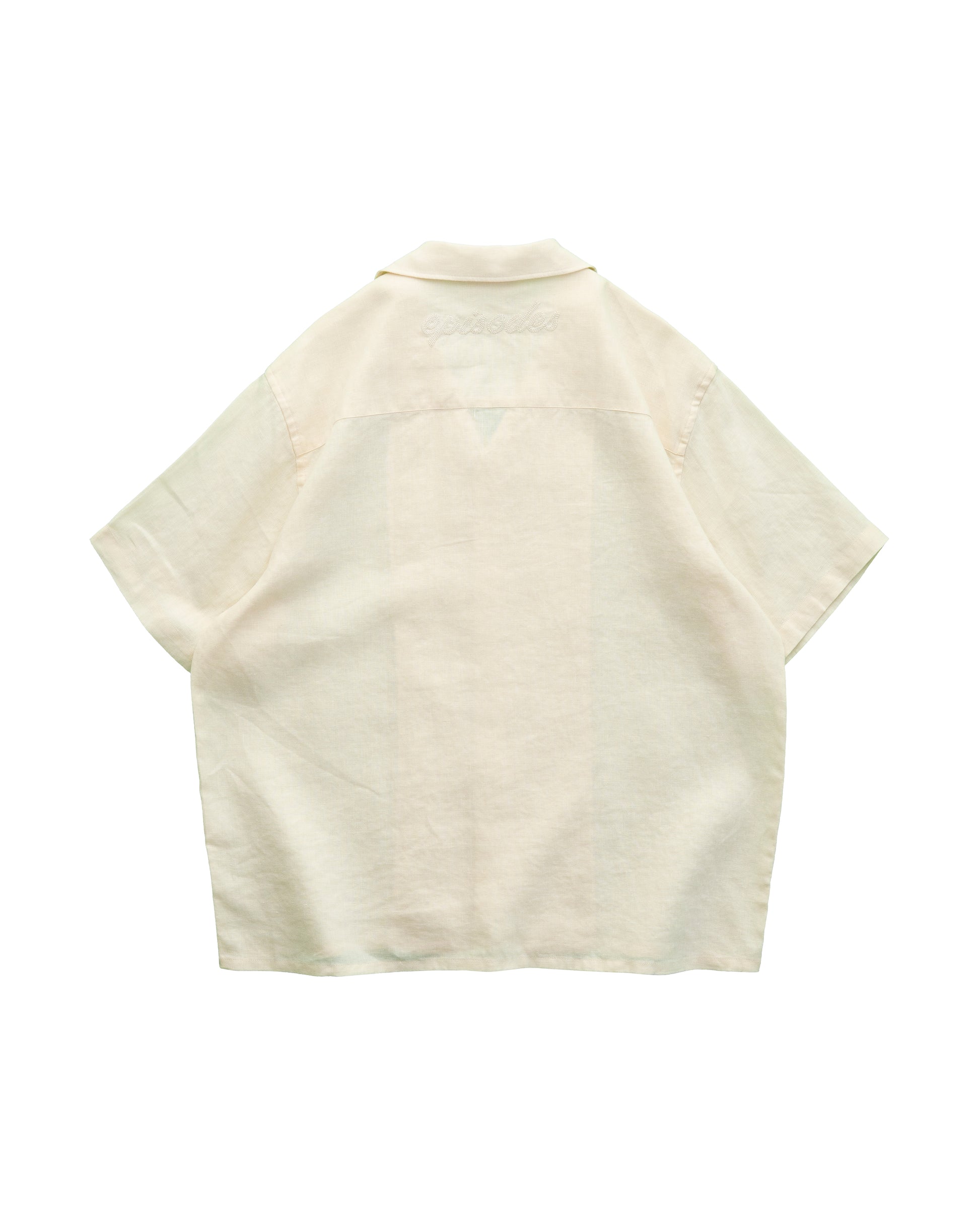 100% Thick Linen Cotton 200GSM - Boxy Fit - Camp Collar - Chain Stitch Embroidery - Discrete Branding.