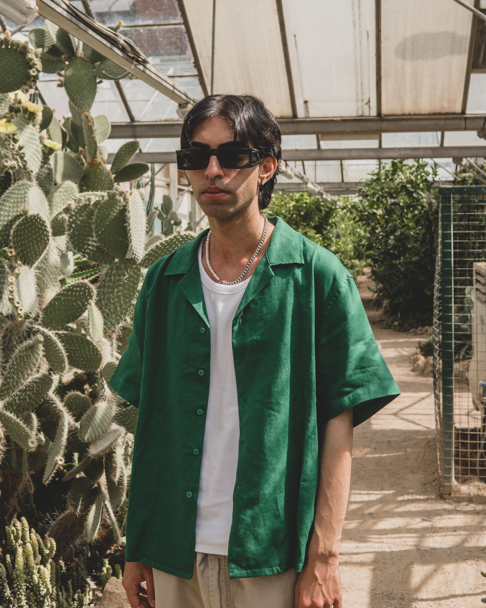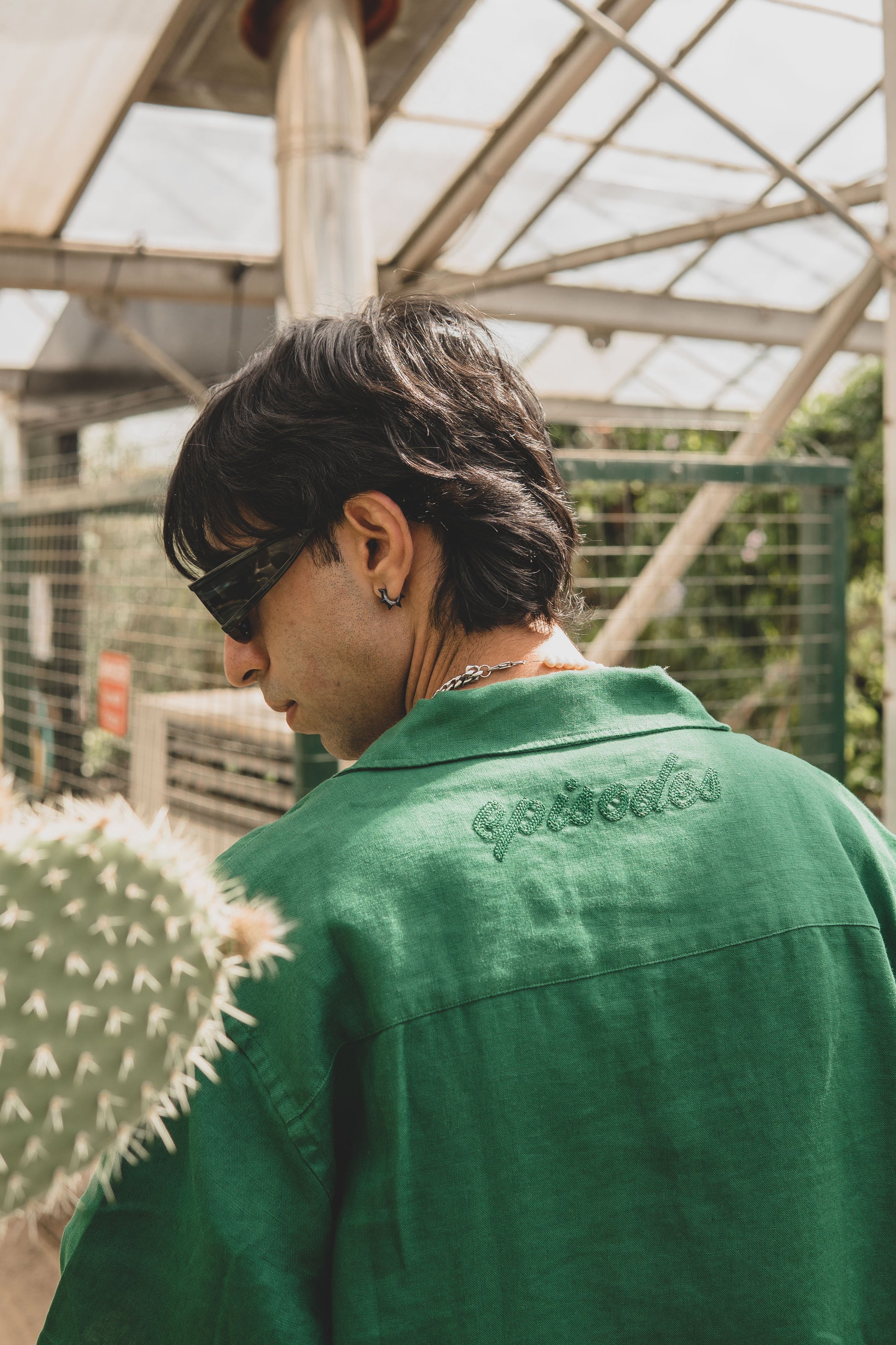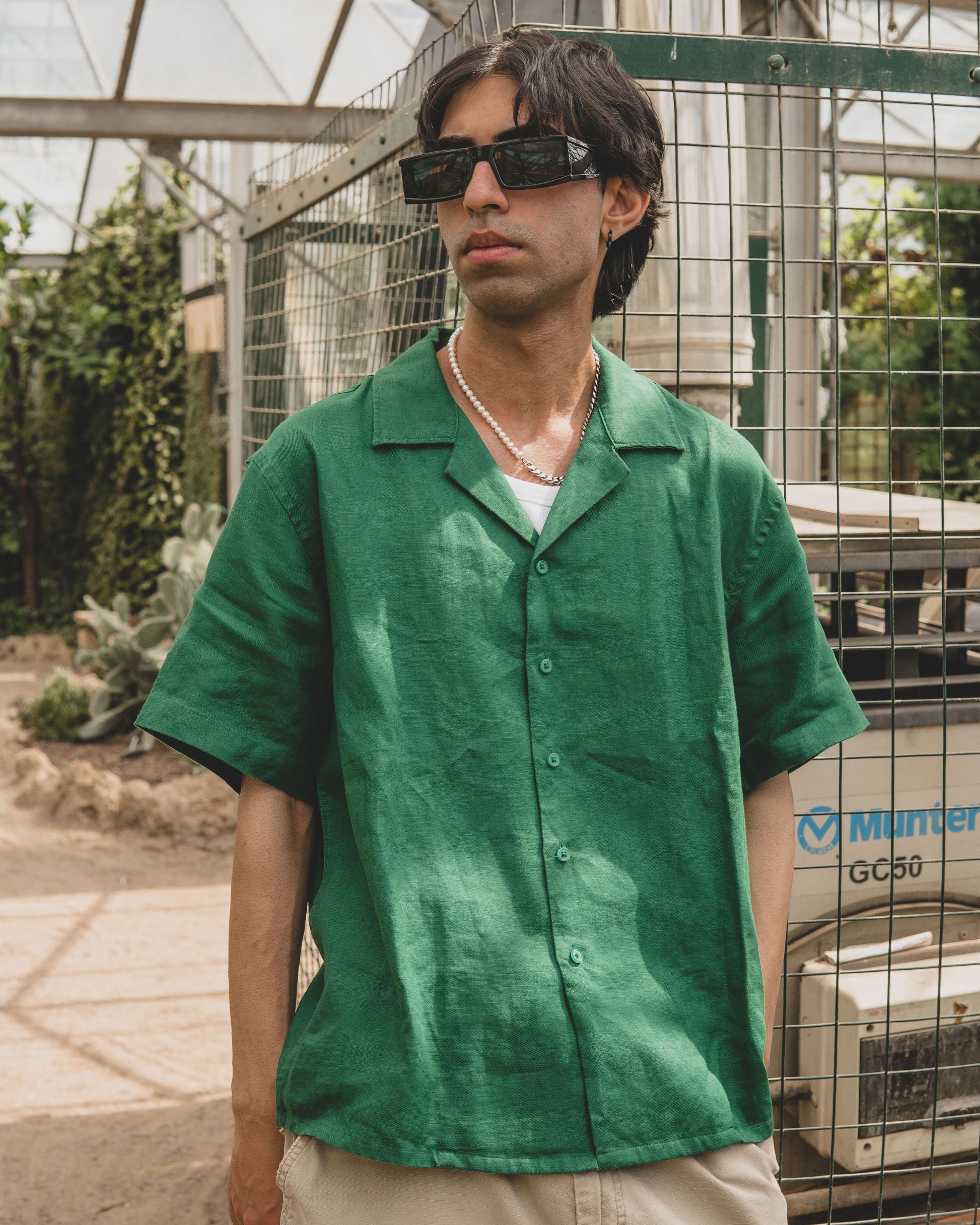 100% Thick Linen Cotton 200GSM - Boxy Fit - Camp Collar - Chain Stitch Embroidery - Discrete Branding.