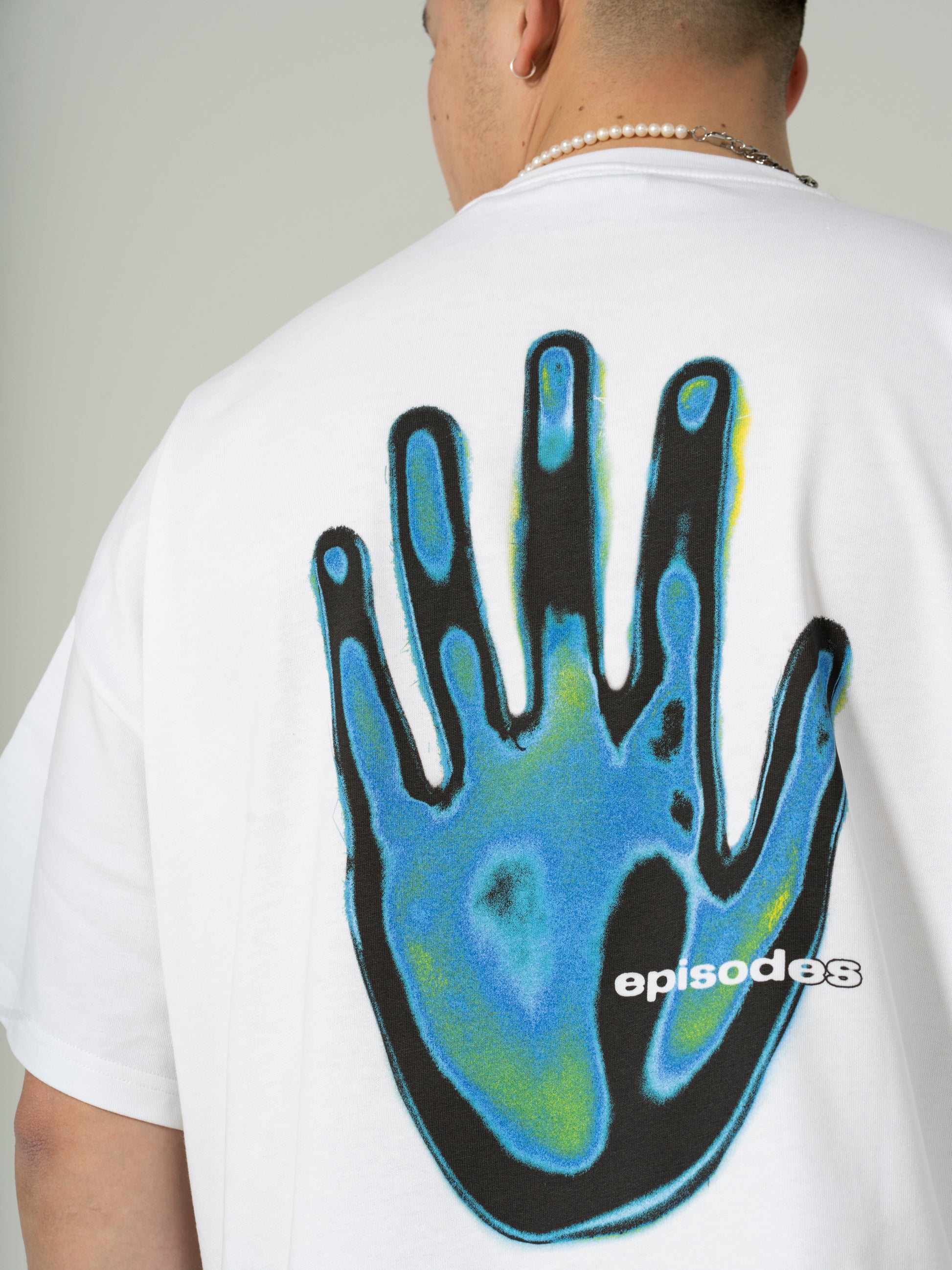 Hand Print Boxy T designed in collaboration with British Artist Charles Greenland Jenkins @cg.jenkins. Part of Episode 2 - The Human Identity Collection. Ultra-High-Definition Print on a Premium Quality 100% Cotton T-Shirt.