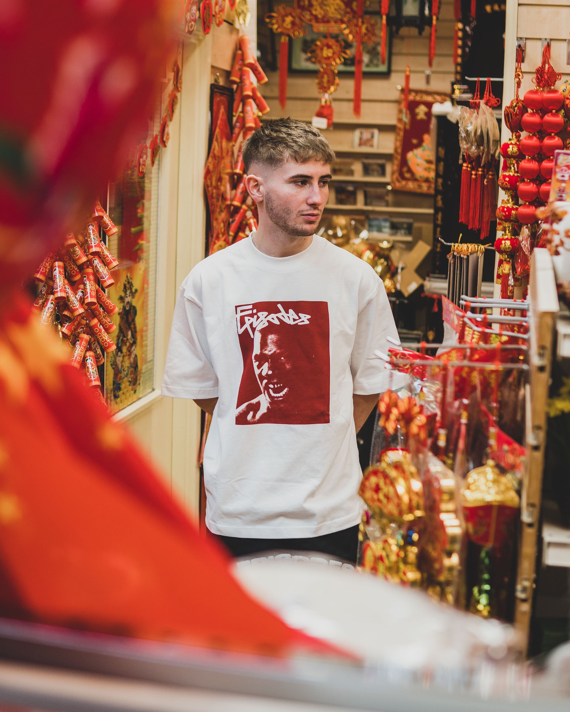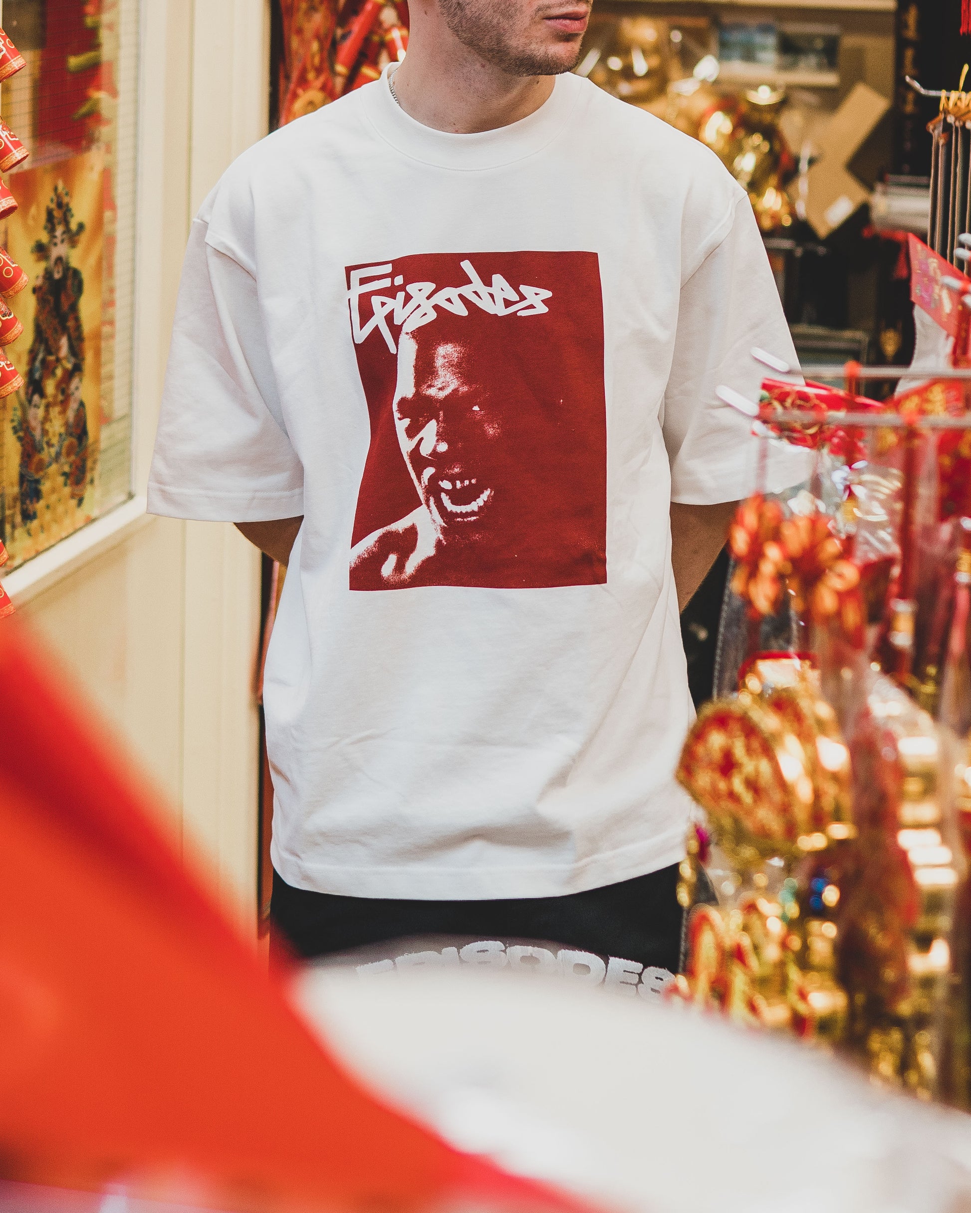 Seeing Red T / Artwork by Albanian artist @vatnikajj / Single Colour Artwork Screen-Printed by hand with Water-Based Ink. Printed on the Episodes Heavy-Weight T.