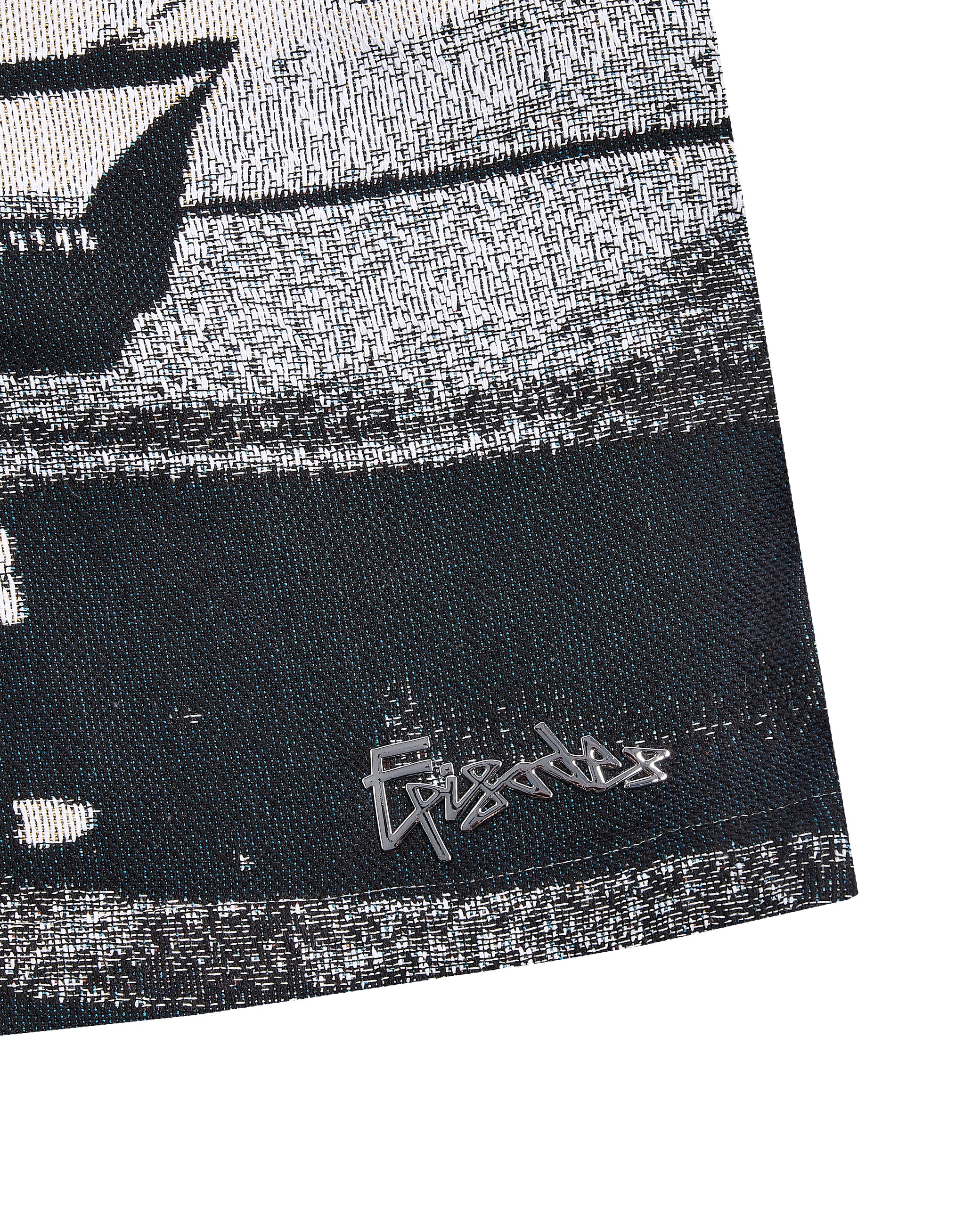 WASHING INSTRUCTIONS - Hand wash cold is highly recommended to preserve the integrity of the woven tapestry - If machine washing, turn garment inside out and wash alone on a gentle cycle - Machine wash cold (maximum 30°C / 86°F) - Use mild detergent - Wash with similar colours - Do not bleach - Avoid fabric softeners, as they may weaken woven fibres over time - Do not tumble dry - hang or lay flat to dry in shade to prevent shrinkage and distortion - Do not wring or twist the garment - Do not iron directly on the metallic logo - use a cool iron or steamer on the fabric surface if needed - May be dry cleaned if necessary, but not recommended due to potential impact on the woven structure and metal detailing - Can be hung, but preferably store folded to prevent stretching - Handle with care - the fabric is prone to snagging on jewellery, bags, or rough surfaces - If any snags or pulls occur, do not cut loose threads - gently pull them back through using tweezers or a blunt needle.