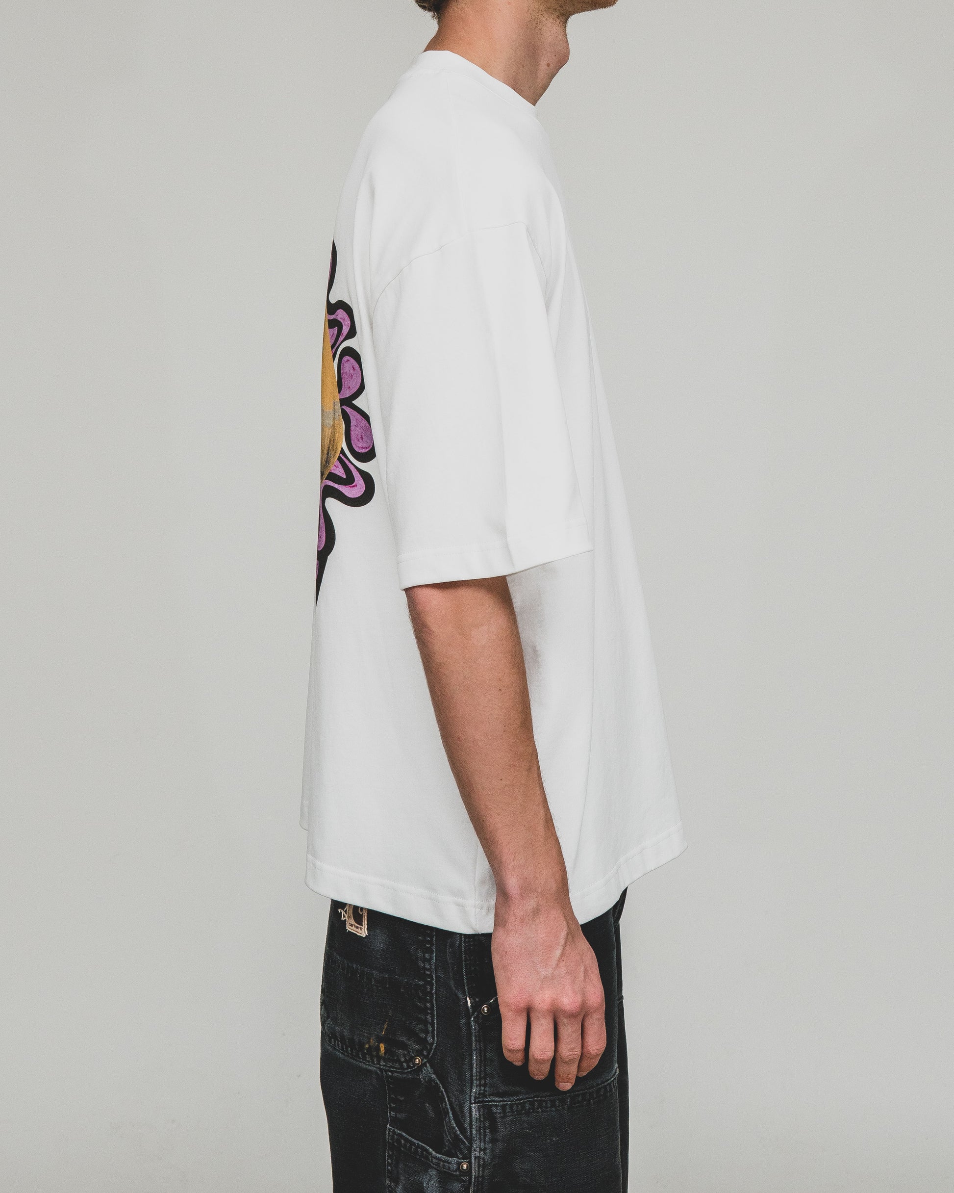 Relaxed Boxy Fit - 100% Brushed Cotton 260GSM - Tight Neck Line - Screen-Printed Artwork - Drop Shoulder.