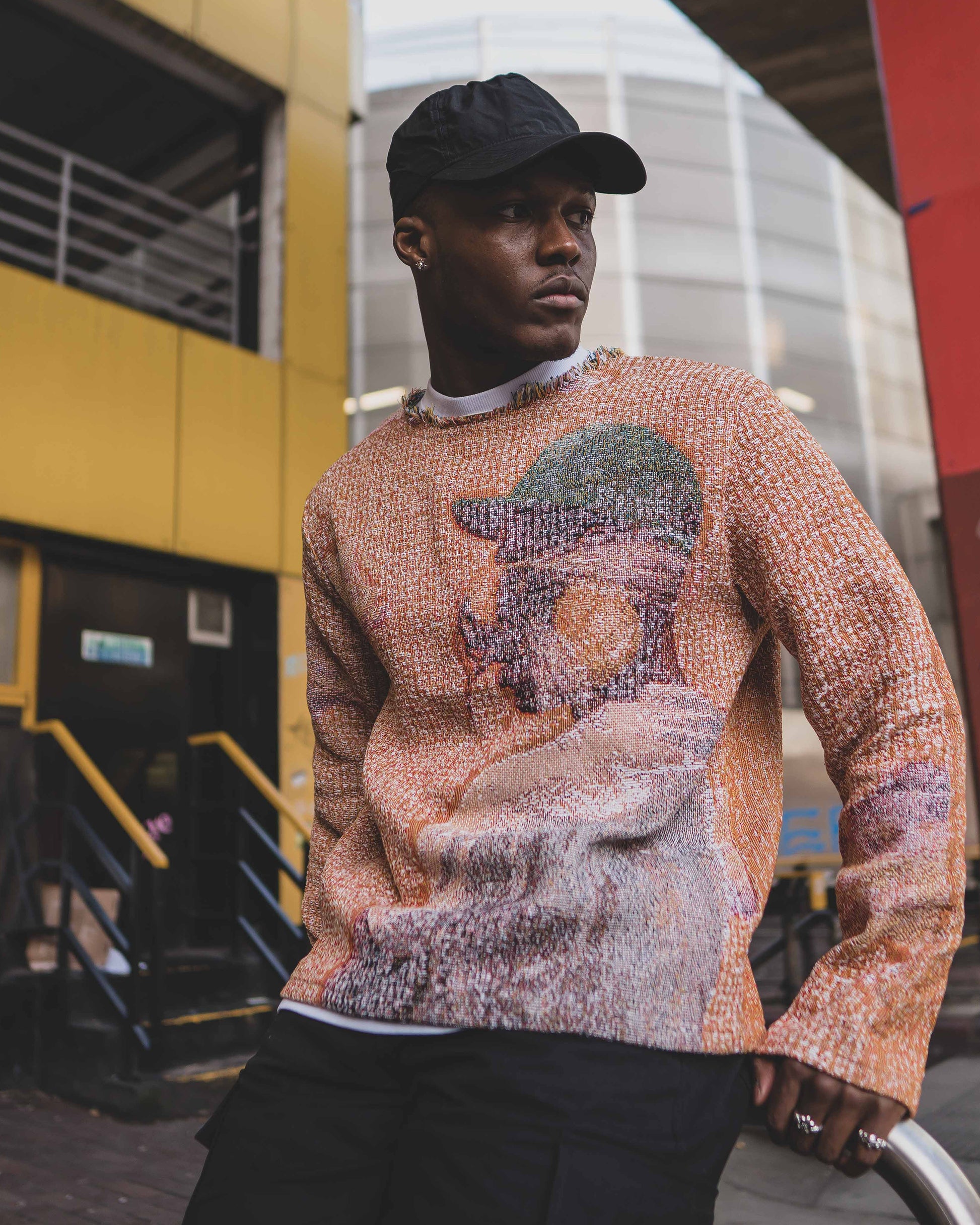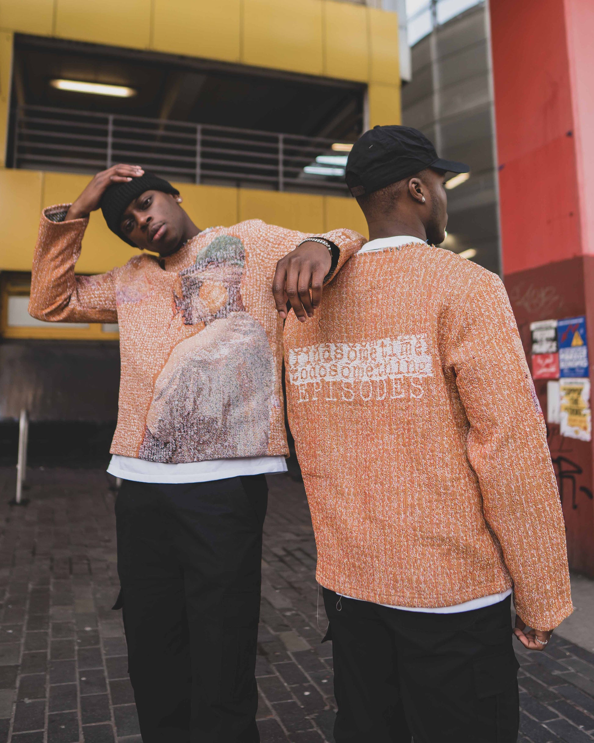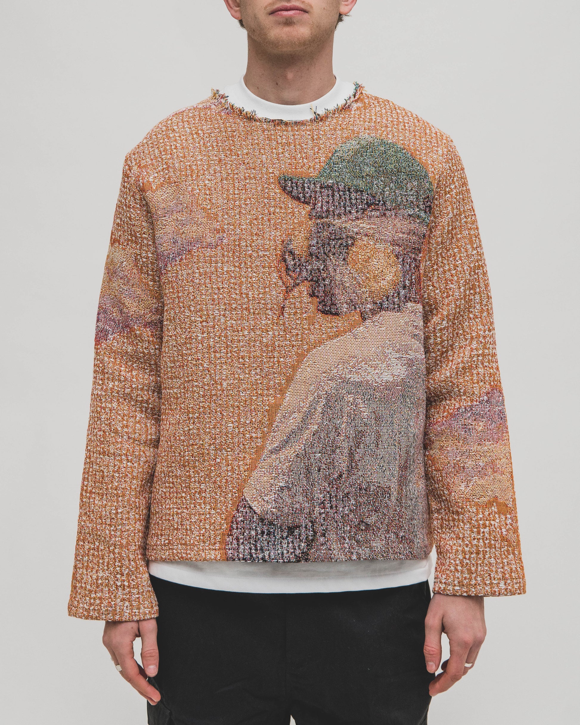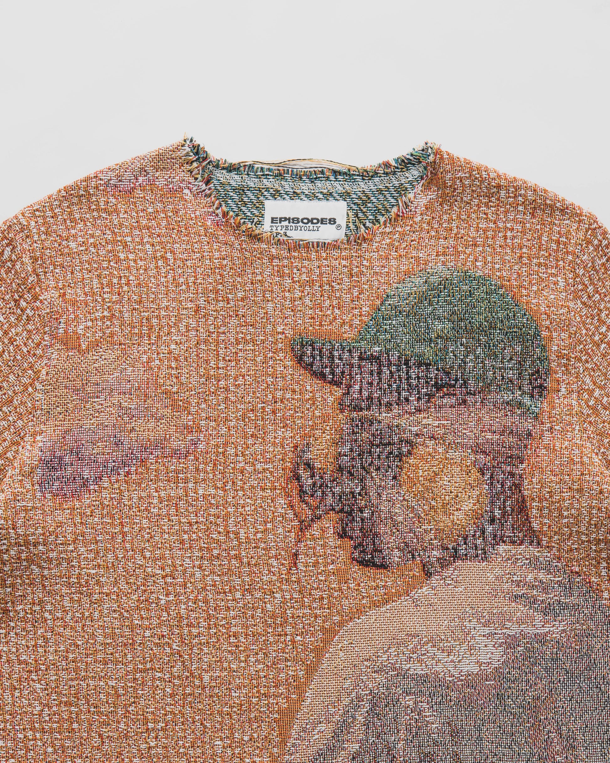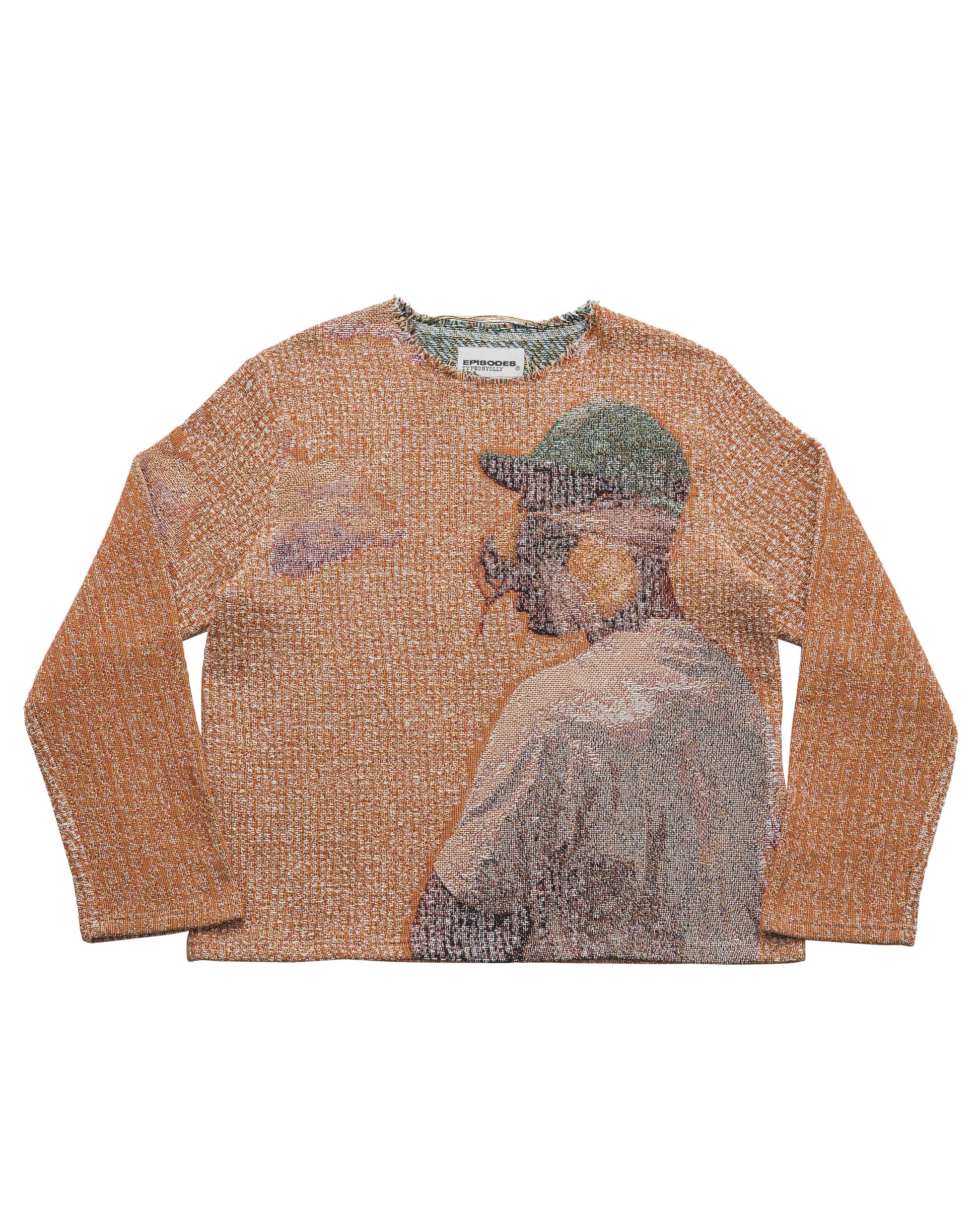 911 tapestry sweatshirt. Each piece is custom cut & sewn to produce a unique look. Designed in collaboration with UK artist @typedbyolly